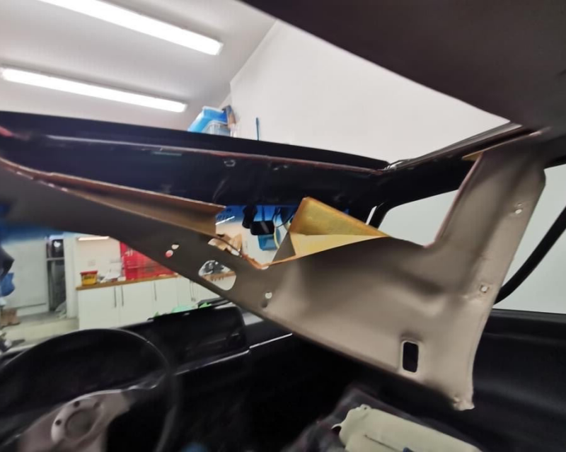 Dit is vaak geen probleem, maar voor wij beloftes doen over het herbekleden moeten wij de huidige toestand even zien. De stof is namelijk slechts een onderdeel van de dakafwerking in de auto.